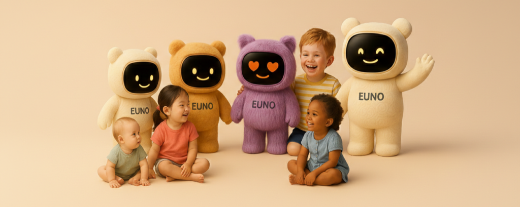 Euno est un robot fictif compagnon intelligent, bienveillant et évolutif, conçu pour accompagner votre enfant de la naissance jusqu’à l’adolescence. Il veille, rassure, joue, apprend, écoute… et grandit avec lui.